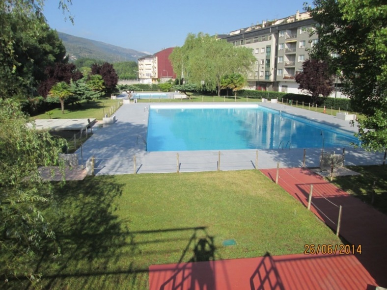 Conta cunha piscina para adultos e outra para nenos/as, zona de praia con xardín de herba natural, terraza, vestiarios, almacén, zona de socorrismo e bar.